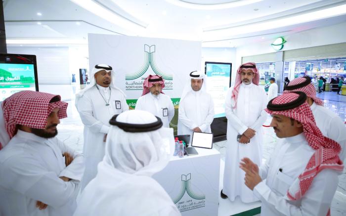 زار سعادة رئيس جامعة الحدود الشمالية الأستاذ الدكتور أحمد بن علي الرميح مساء اليوم الإثنين 2/1/1446هـ الموافق 8/7/2024م، يرافقه وكلاء الجامعة وعدد من عمداء الكليات والعمادات المساندة، معرض القبول الجامعي للعام 1446هـ، والذي تنظمه عمادة القبول والتسجيل بمجمع العثيم مول بمدينة عرعر.
