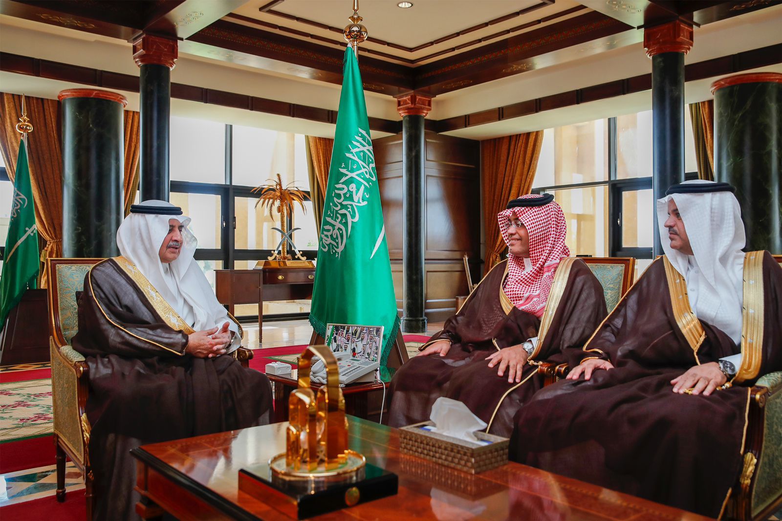 وفي بداية الاستقبال رحب سموه بهما ، مثنياً على الجهود التي بذلها معالي الدكتور الذيابي خلال فترة عمله رئيساً للجامعة وما وصلت إليه الجامعة من تميز أكاديمي .