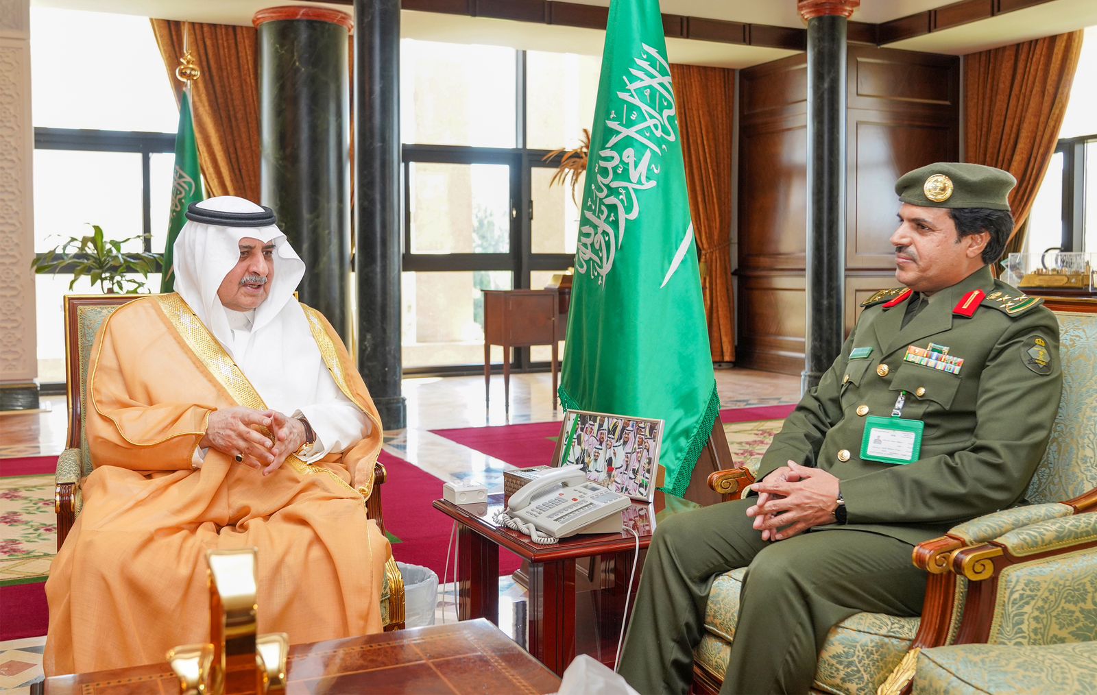 استقبل صاحب السمو الملكي الأمير فهد بن سلطان بن عبدالعزيز أمير منطقة تبوك بمكتبه بالإمارة اليوم،العميد صنهات بن محمد السهلي بمناسبة تكليفه مديرًا لجوازات منطقة تبوك.