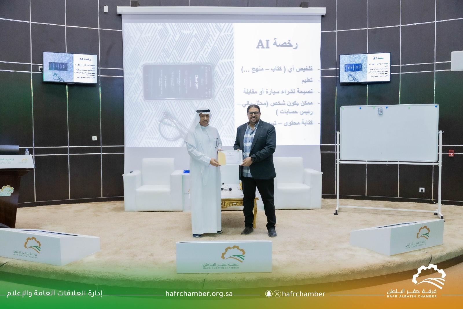 نظمت غرفة حفرالباطن بالتعاون مع معهد رفال العالي للتدريب، دورة تدريبية بعنوان (مهارات الاتصال الفعال)، لمدة ثلاثة أيام وبمعدل 15 ساعة تدريبية معتمدة، قدمها الدكتور محمد الشناوي، شهدت الدورة مشاركة أكثر من 140 متدرب ومتدربة.