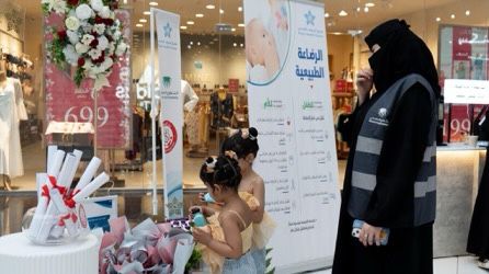 مركز الرعاية الصحية الأولية بالمخطط يُفعل الحملة الوطنية للرضاعة الطبيعية تحت شعار رايتك بيضاء وبداية طبيعية في مجمع سيتيز مول
