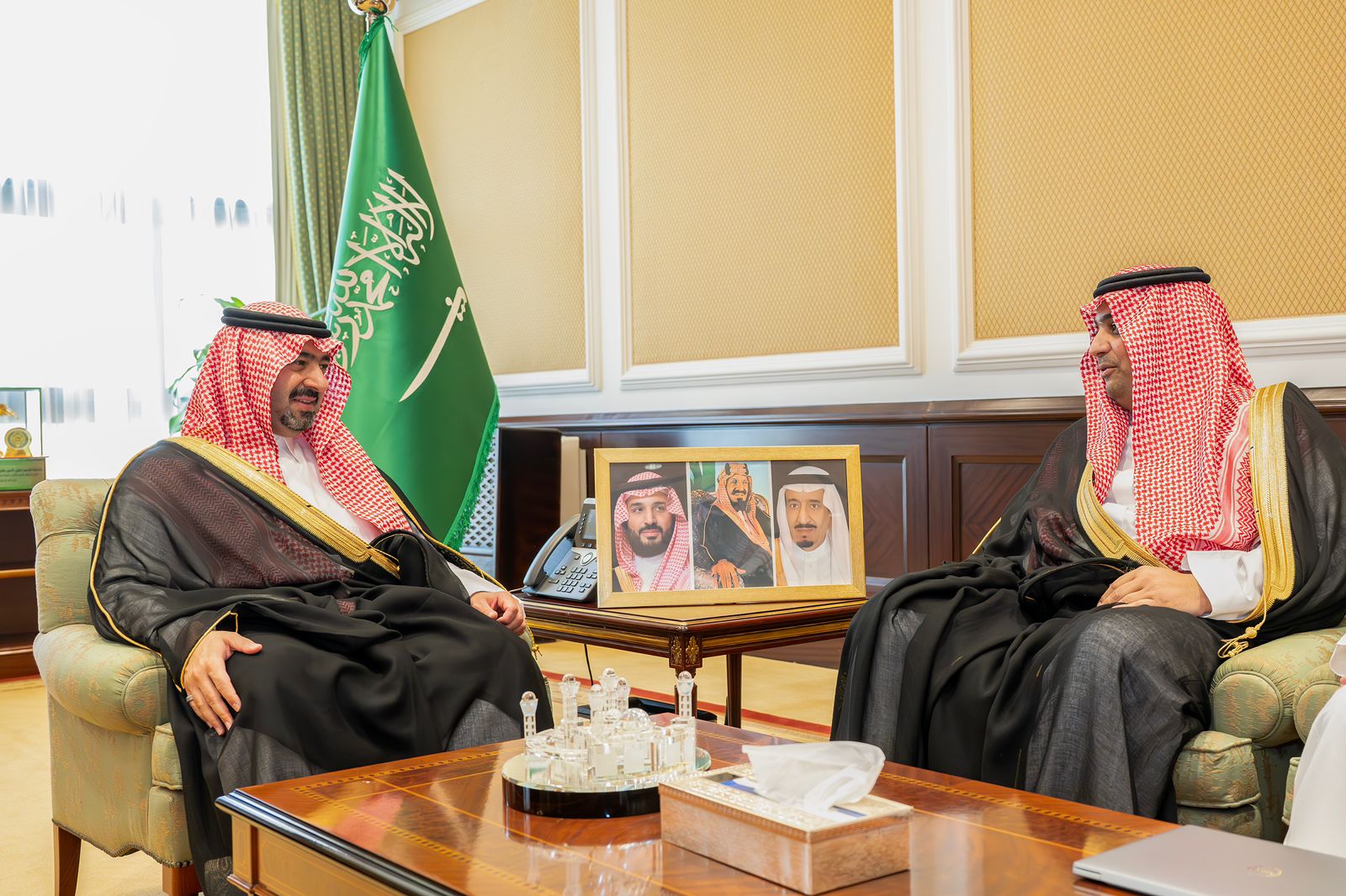 استقبل صاحب السمو الملكي الأمير خالد بن سعود بن عبدالله الفيصل بن عبدالعزيز نائب أمير منطقة تبوك، في مكتبه بالإمارة اليوم، وكيل وزارة السياحة للتراخيص والتصنيف عبدالمحسن بن محمد المزيد يرافقه مدير عام التصنيف خالد المسعري، ومدير عام الرقابة والتفتيش إبراهيم العليان.