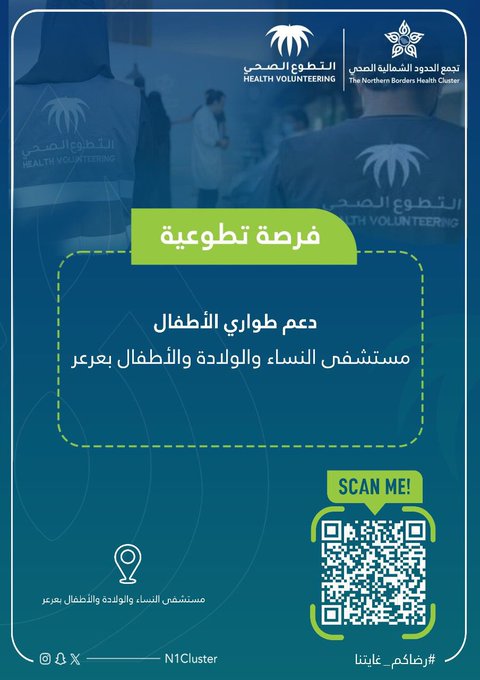 يُعلن تجمع الحدود الشمالية الصحي عن توفر فرصة تطوعية: