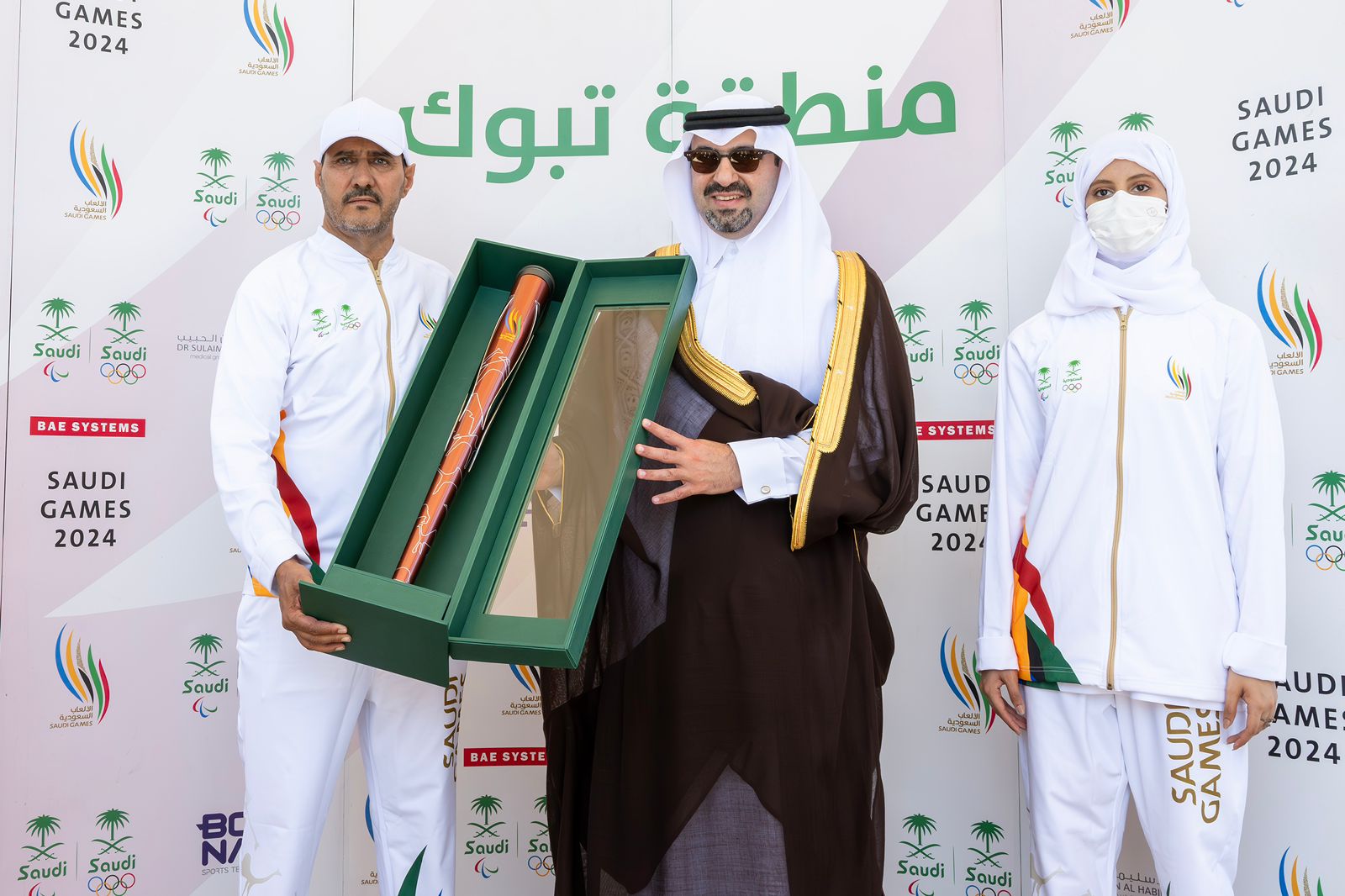 وتسلّم سمو نائب أمير منطقة تبوك شعلة الدورة من الأديب المهندس/ محمد فرج العطوي عضو النادي الادبي وجمعية الثقافة وجمعية تراحم بالمنطقة سابقا ، وتناوب على حمل الشعلة في الامارة لاعبة القوى أثير دغريري الحاصله على كأس بطولة المملكة لألعاب القوى 2021 كما حققت ثلاث ميداليات في بطولة العاب القوى للجامعات على مستوى المملكه 2024 وحاصلة على جائزة ملهم 2022.