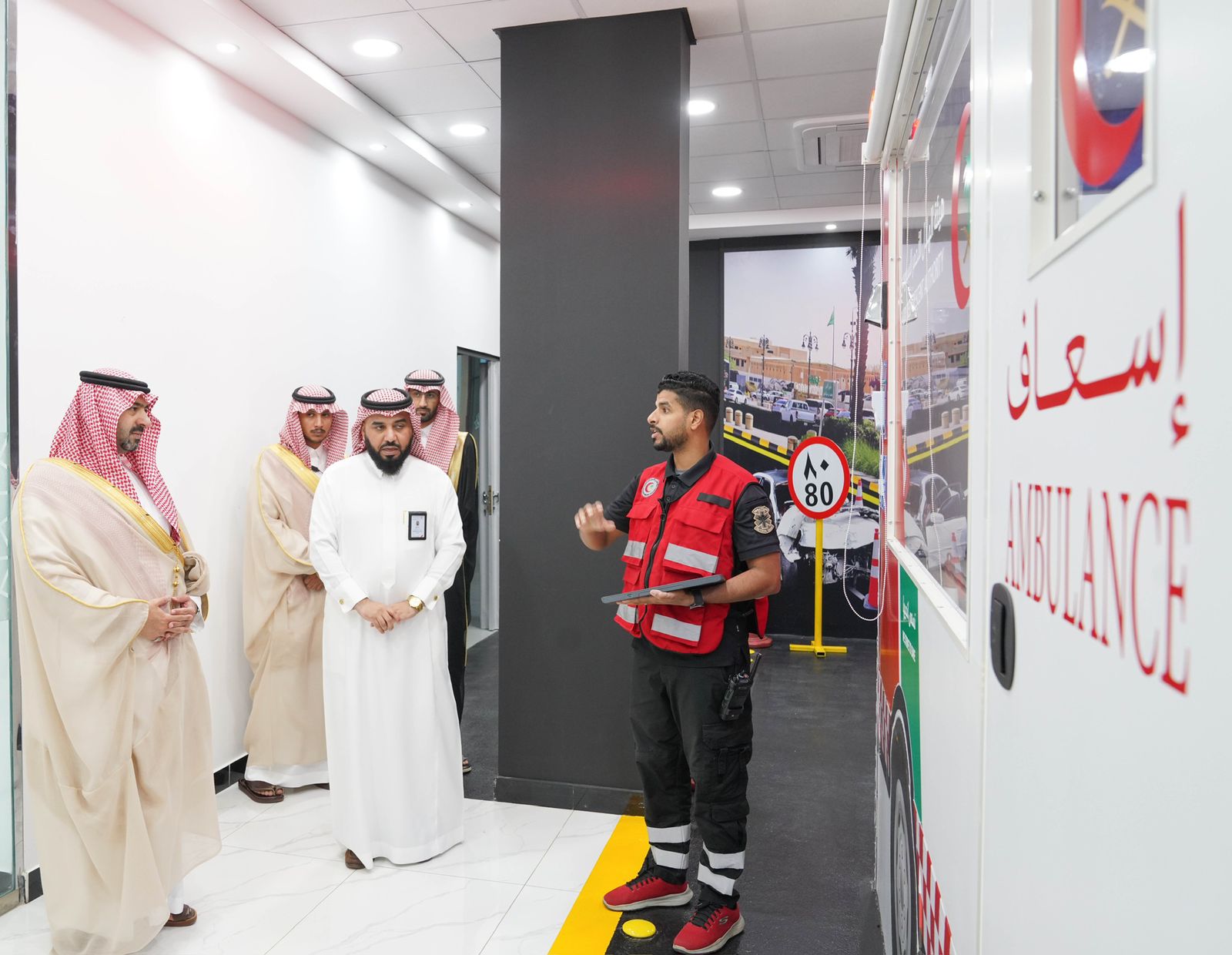 كما اطلع سموه، خلال الزيارة، على جميع خطوات الرحلة الإسعافية كاملة من تلقي البلاغات مروراً بتسليم الحاله للمستشفى وإستعداد الفريق لتلقي بلاغ اخر كما تفقد سموه أسطول الهيئة.