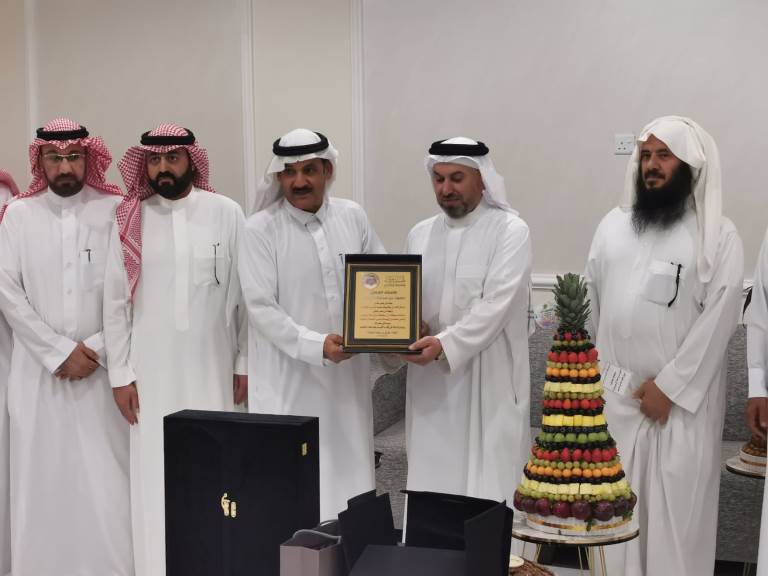 وبدأ التكريم بحضور مدير مكتب التعليم الأستاذ عبدالله بن سلمان الزارع و عدد من المشرفين و المحبين و الأصدقاء و الزملاء معلمي المدرسة بقيادة مدير المدرسة الأستاذ محمد عبدالله عمشان الحسن والذي رحب بالحضور و أثنى على جهود المعلم طيلة سنوات خدمته و مقدما شكره وتقديره للمعلم المتقاعد سائلا الله له التوفيق و الحياه السعيدة بصحة و خير و بركة .